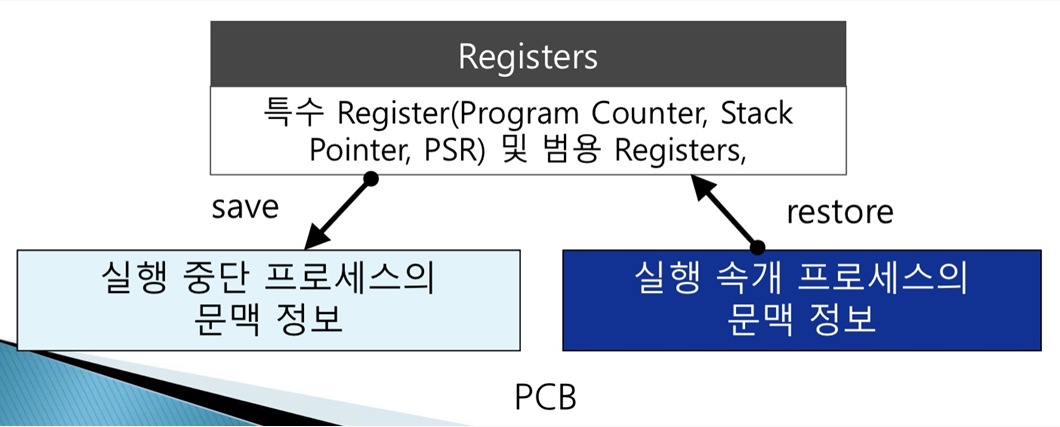 실행이 정지되는 프로세스 문맥은 보존되고, 새로 실행되는 프로세스의 문맥이 활성화된다.