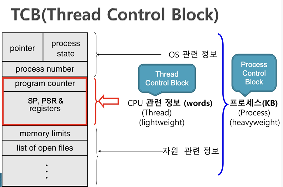 하나의 프로세스 내에 여러 개의 쓰레드를 구성할 수 있다.