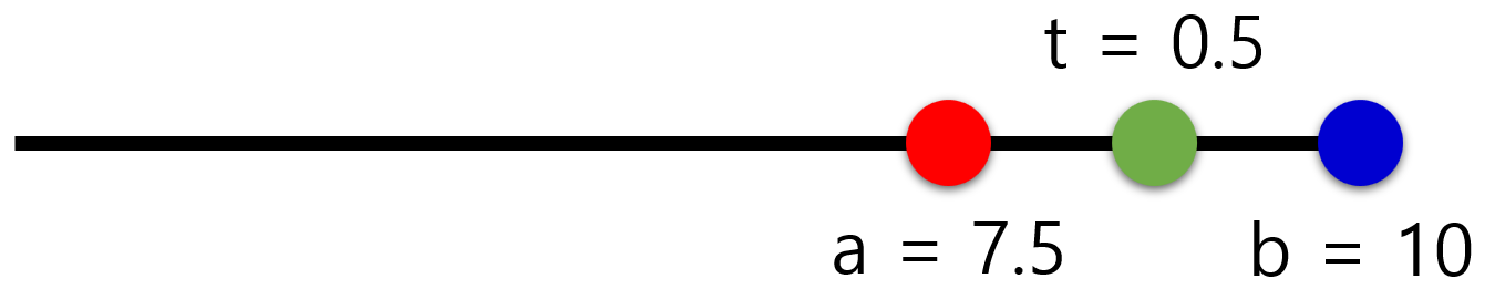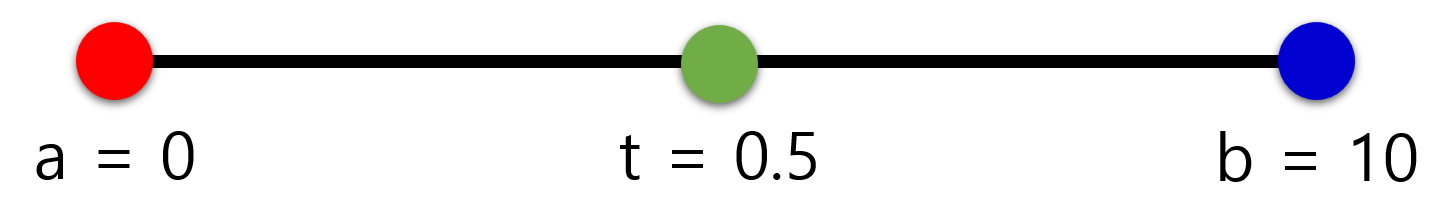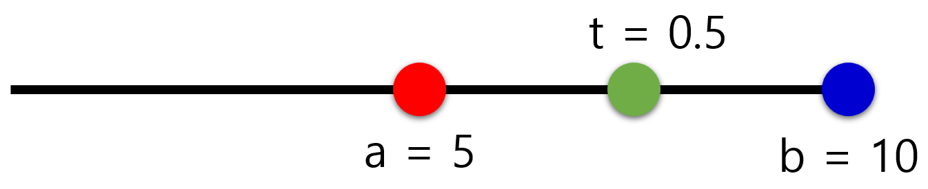 Lerp에 대해 알아보러 가기 유니티 - Mathf.Lerp() 1. Lerp(Linear Interpolation) 두 값을 선형 보간(linear interpolation)하여 새로운 값을 계산 매개변수 a : 시작 값 b : 종료 값 t : a와 b 실수 값 사이의 보간 비율
