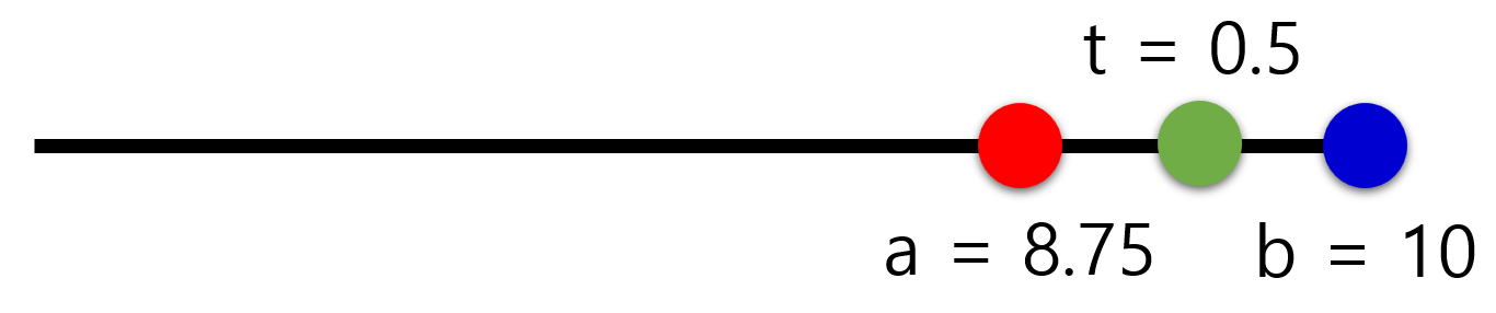 두 값을 선형 보간(linear interpolation)하여 새로운 값을 계산