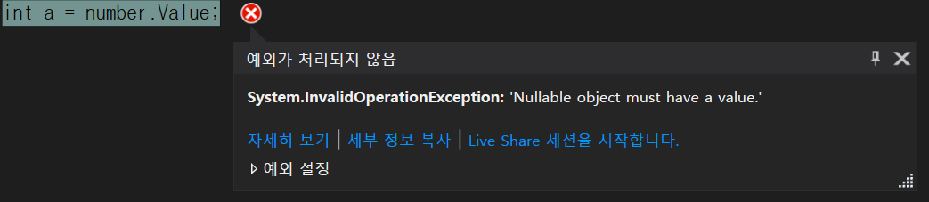Hasvalue 속성이 fasle이면 예외가 throw된다.