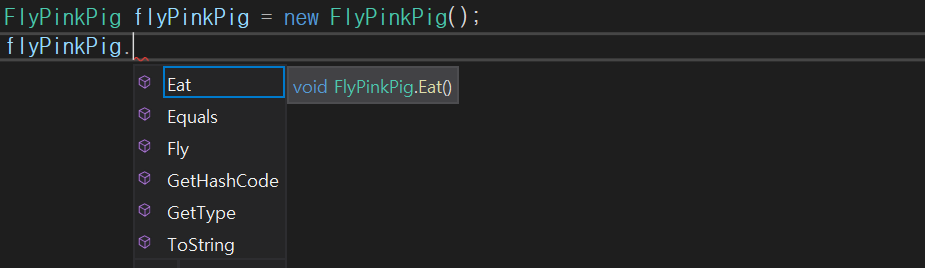Eat함수는 인터페이스 안의 추상함수가 아니므로 참조할 수 없다.