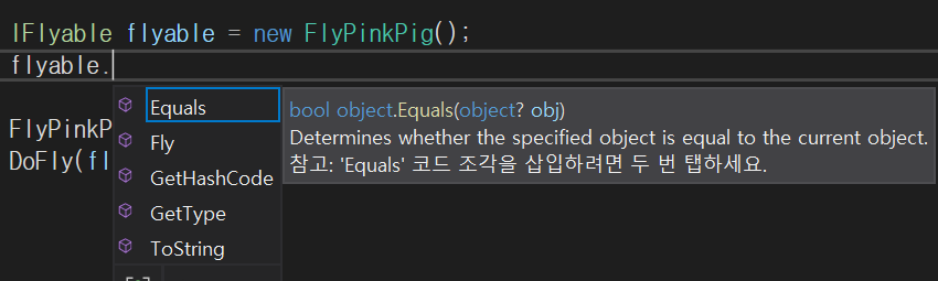 flyable을 내포 하고 있는 애만 DoFly를 호출 할 수 있다.