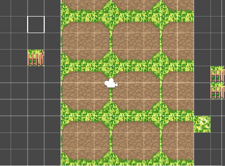 팔레트에서 원하는 타일을 선택한다. 그런 다음 박스 채우기도구를 사용하여 선택한 타일맵 상에서 마우스를 들고 드래그하면 자동으로 채워넣어진다.