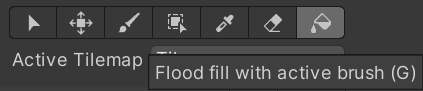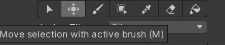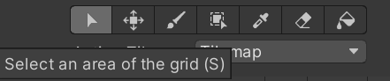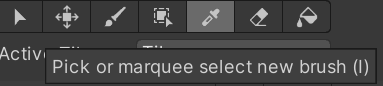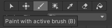 타일맵이나 타일맵 팔레트에서 타일을 선택 및 여러 타일을 선택할 수 있다. 선택을 한 후에 활성 도구가 자동으로 페인트 브러시도구로 전환된다. 이로 인해 바로 타일맵에 그림을 그릴 수 있도록 해준다.