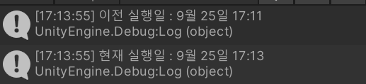 Debug.Log($"이전 실행일 : {oldMonth}월 {oldDay}일 {oldHour}:{oldMinute}");