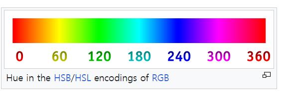 hueMin, hueMax - 0부터 1사이의 값을 가진다. 0은 빨강, 0.33(120/360) 초록, 0.67(240/360) 파랑이다.