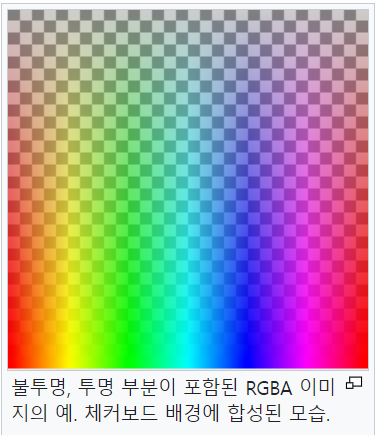 RGBA는 Red, Green, Blue, Alpha(투명도)로 이루어져 있다. 각 요소들은 0부터 1까지의 값을 가지며 0에 가까울수록 해당 색이 연해지고 1에가까월 수록 해당 색깔이 진하다.
